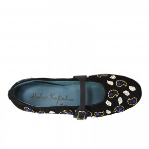 A soft suede boot with a geometric front panel embroidered using Mughal-era dabka and gajai techniques. The pointed shape keeps the silhouette sharp, while muted bead highlights add depth to the pattern. A balanced block heel completes the design for day-to-evening wear.