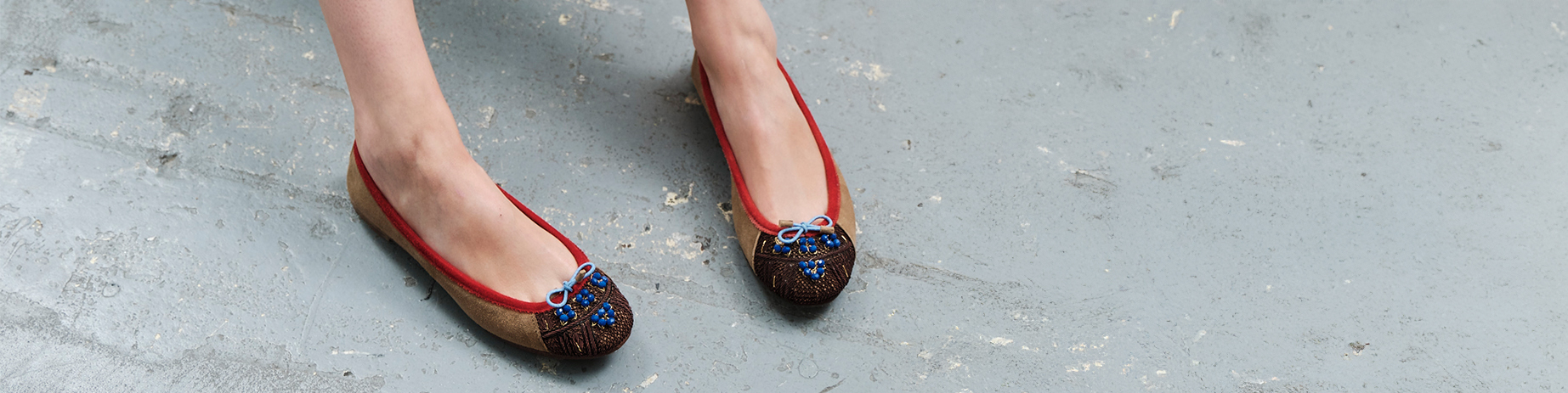 Price €181.00Our signature handmade embroidered Bizi Ballet flats are now available in a stunning Gold/Gold combination. Expertly embroidered by skilled artisans using sustainable methods, these flats offer both luxury and comfort. Each pair features intricate embroidery, handcrafted with dedication, making them a unique and timeless addition to your collection. Perfect for both casual and elegant occasions.