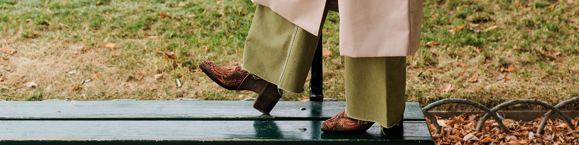 Price £240.80Hand-dyed velvet ankle boots with handcrafted embroidery and a sculpted low heel. Each pair is unique, combining rich texture with refined craftsmanship.
