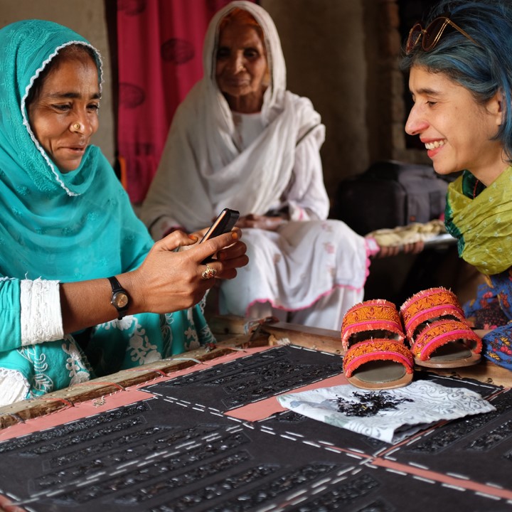 She had moved from Karachi to London to study but kept her love for handcraft. After several years of working in the corporate world, on one of her trips back home, she discovered the women who had kept up the tradition of embroidering shoes for the Moghul Kings and Queens.